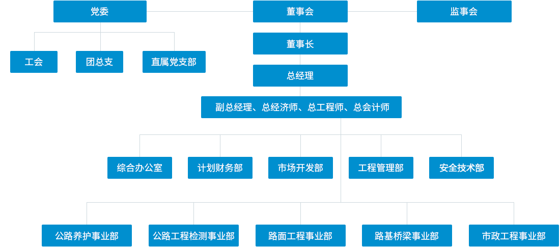 公司技術力量雄厚、設備先進,現(xiàn)有職工全部人員人數(shù)428人。各類技術人員260多人,公司在職正式員工專業(yè)技術等級員工高級職稱61人,中級職稱120人,初級職稱86人。在職正式員工取得執(zhí)業(yè)資格證人員一級建造師24人、二級建造師42人、造價工程師3人,注冊安全工程師2人。擁有橋梁、隧道、路面、路基專業(yè)機械設備共1869臺(套),下設5個獨立核算的直屬事業(yè)部。已通過ISO9001質(zhì)量管理體系、OHSA18001職業(yè)健康安全管理體系、ISO14001環(huán)境保護管理體系的認證。