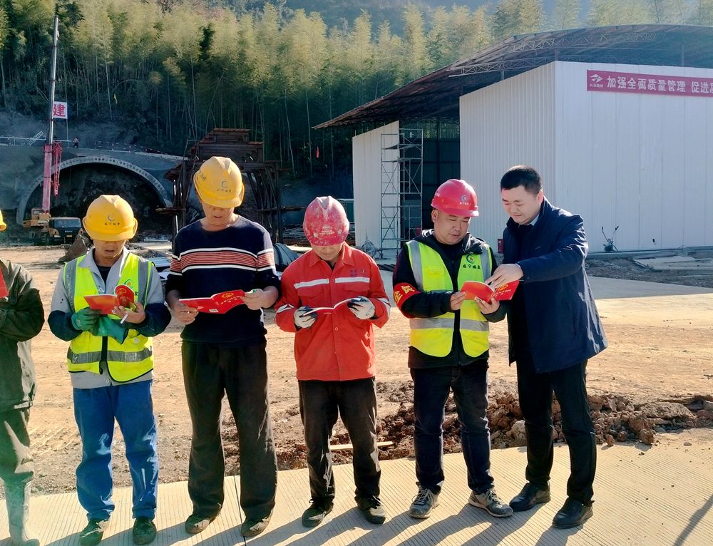 二是送法到基層,普法零距離。公司邀請湖北眾和律師事務(wù)所詹書超律師普法團(tuán)隊深入咸寧桂花至汀泗高速公路GTTJ-3合同段項目施工現(xiàn)場,開展憲法宣傳活動。活動中,普法團(tuán)隊為項目部全體干部職工及農(nóng)民工朋友送去憲法讀本,面對面答疑解惑,用大家喜歡聽、愿意看的形式,用接地氣、有溫度的鮮活語言,講準(zhǔn)憲法、講透憲法、講活憲法,真正讓憲法知識融會貫通到現(xiàn)場每一位干部職工心中,進(jìn)一步提高廣大干部職工的法治意識和法治素養(yǎng),為推進(jìn)依法治企,打造法治興達(dá),促進(jìn)合規(guī)經(jīng)營筑牢基礎(chǔ)。