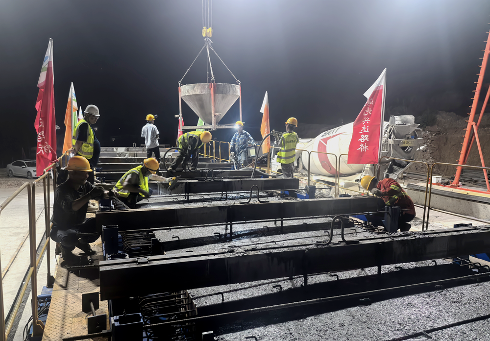 施工過程中,項目部層層把控工程質(zhì)量和安全管理,合理安排物資機械設(shè)備,對混凝土攪拌、運輸、澆筑、振搗等關(guān)鍵環(huán)節(jié)進行全過程監(jiān)控,同時項目管理人員輪流值班,緊盯現(xiàn)場,加強安全防護工作,確保工程進度安全有序推進。