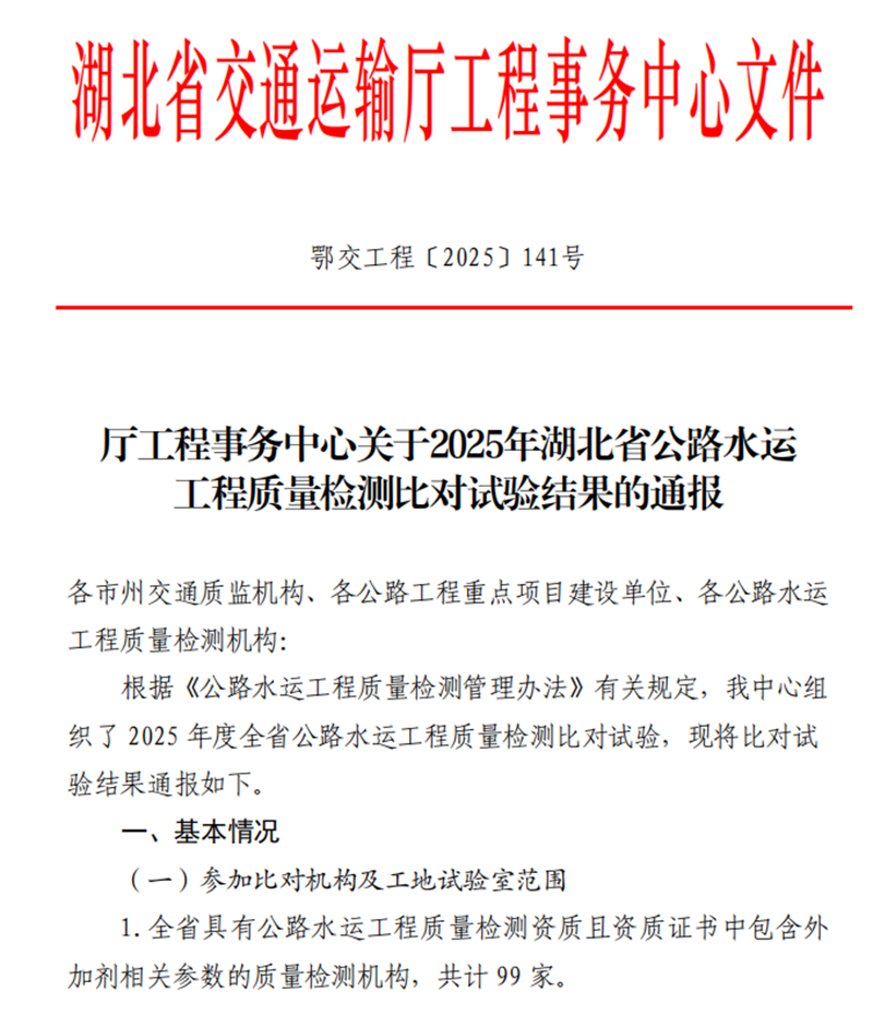 近日,湖北省交通運(yùn)輸廳工程事務(wù)中心正式公布2025年度全省公路水運(yùn)工程質(zhì)量檢測比對試驗(yàn)結(jié)果。本次比對試驗(yàn)是全省檢測行業(yè)一項(xiàng)權(quán)威性強(qiáng)參與面廣的專業(yè)能力檢驗(yàn),共吸引99家具備資質(zhì)的檢測機(jī)構(gòu)及201家在建公路重點(diǎn)工程工地試驗(yàn)室參與。考核聚焦外加劑和水泥兩類關(guān)鍵工程材料,通過統(tǒng)一標(biāo)樣、同步操作、盲樣檢測等方式,全面評估各機(jī)構(gòu)的技術(shù)操作規(guī)范性與數(shù)據(jù)準(zhǔn)確性,對促進(jìn)全省交通建設(shè)工程質(zhì)量整體提升具有重要意義。